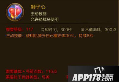 以上就是小编为大家带来的征途手游狮子心技能介绍,希望大家喜欢。更多精彩的游戏攻略,敬请继续关注APP178手游网。