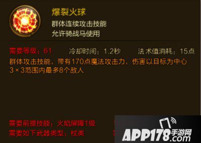 以上就是小编为大家带来的征途手游爆裂火球技能介绍,希望大家喜欢。更多精彩的游戏攻略,敬请继续关注APP178手游网。