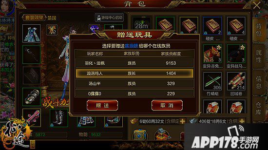 3、族员赠送。有些玩具就是获取不到怎么办?那就邀请族员赠送你吧!在背包中,使用玩具道具,可以选择将玩具赠送给哪个在线的家族成员。每天可以接受赠送的玩具上限为10件。