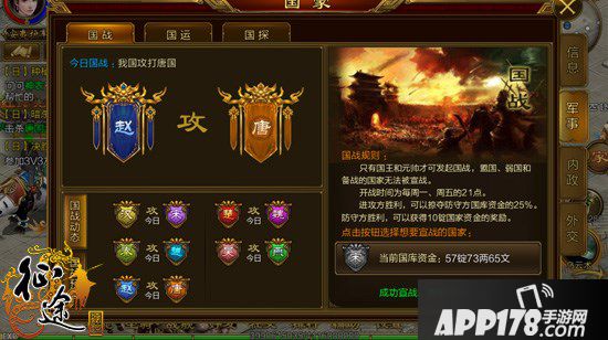 赵国的盟国依旧为魏、越两国,需要了解的是最近魏、越两国国内稍有动荡,可能对国战或者海战有一定影响。国战今晚如期而至,赵国攻打唐国从双方国家综合实力来讲相差不大,赵国总体获胜几率颇大。那么,具体国战中各国又是怎样对战的呢,一起来看吧。