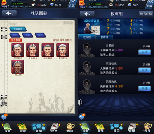 教练技能看起来很玄,但在各种球赛中,像卡佩罗,温格,弗格森,穆里尼奥,安切洛蒂等等教练们其实也拥有各自的独门绝活,而游戏的教练技能,便是用来体现他们独一无二的天赋和性格。为了令玩家们感受到教练们不逊于现实球场的风采,但又不影响玩家接触体验。《最佳阵容》将教练技能分为两类,分别是加成和阵型。同时为了让教练更有真实感觉,还扩充了特殊功能。