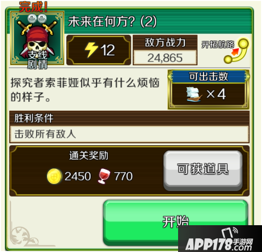 第三章支线,此关卡难度比3-10要高不少,不建议新手使用。此图好处内有黄金船价值3000金币。角色级别平均30+或者使用双刀好友可轻松升级。