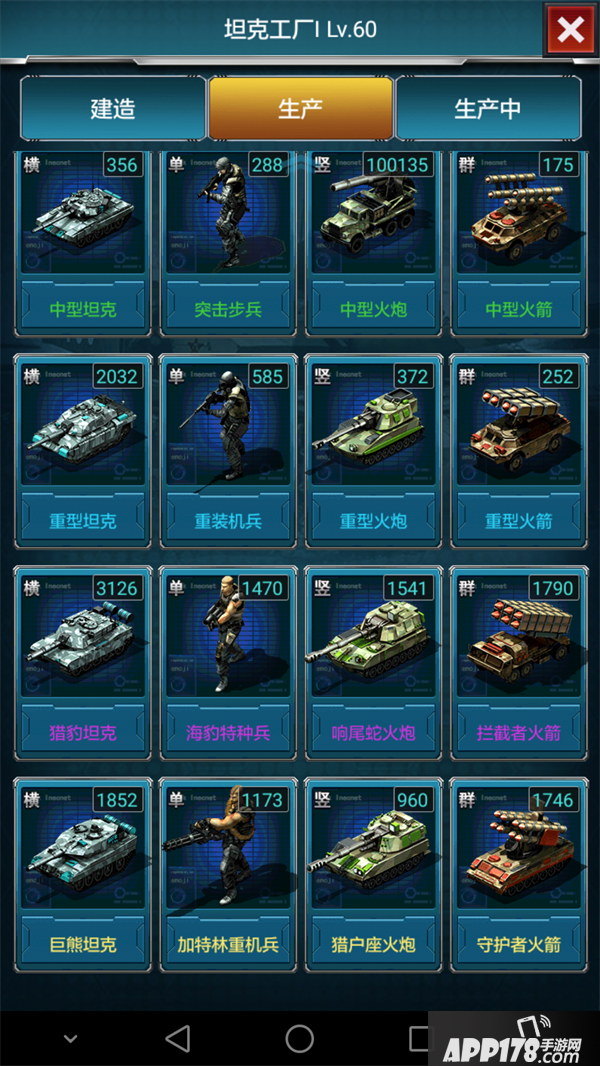 这些战斗力强大的钢铁巨兽,只需要通过消耗基地定量时间与资源,就可以轻松生产出来!不同等级的兵种拥有不同的属性值,以及优势弱点、光环,通过优秀的排兵布阵可以拥有增益减益BUFF,可以使玩家在战斗过程中取得意想不到的大战果甚至零损失!