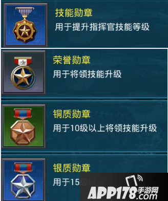 作用:将领技能升级,依据不同技能等级,所需勋章不同。
