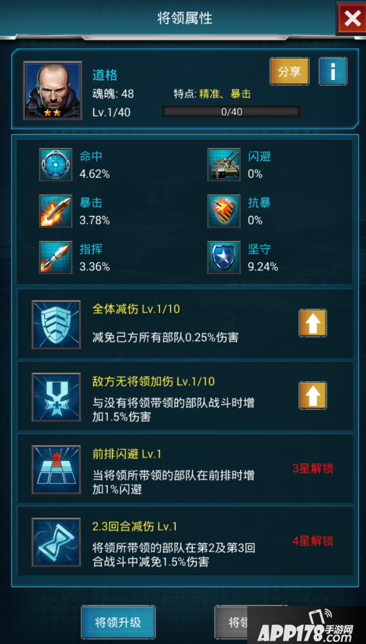 4、将领等级升满后可通过【将领升星】来进化为星级更高的将领