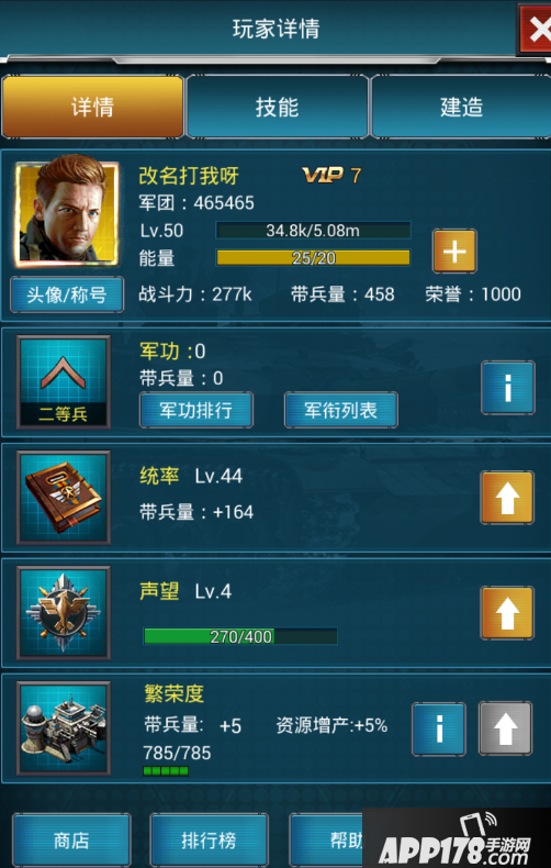5、声望:限制着科技等级上限,所以要研发更高级的科技,就要实时跟紧提升声望,声望除了每天签到可以获得,完成任务、攻打战役、每日授勋等途径都可以获得。