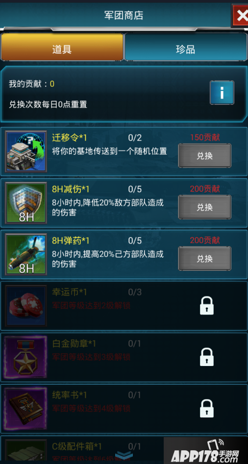 当大家捐献积累到一定数量的贡献时就可以去军团商店中兑换一些特殊的道具。