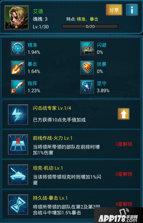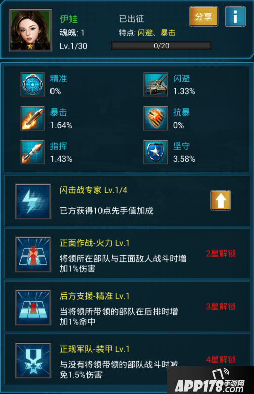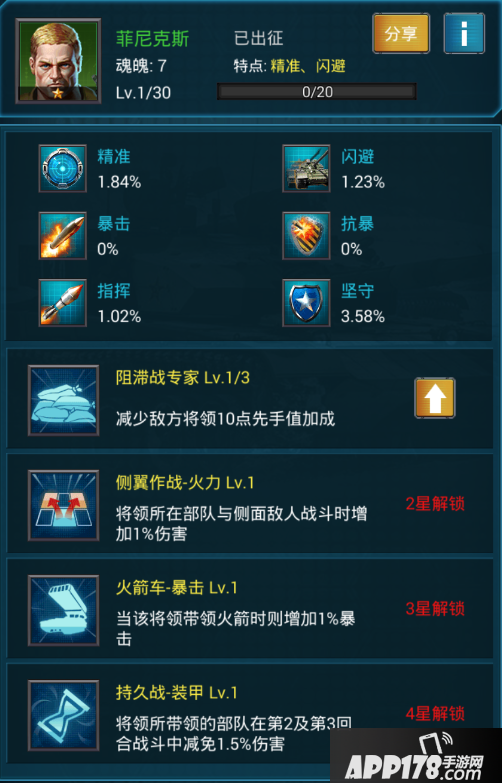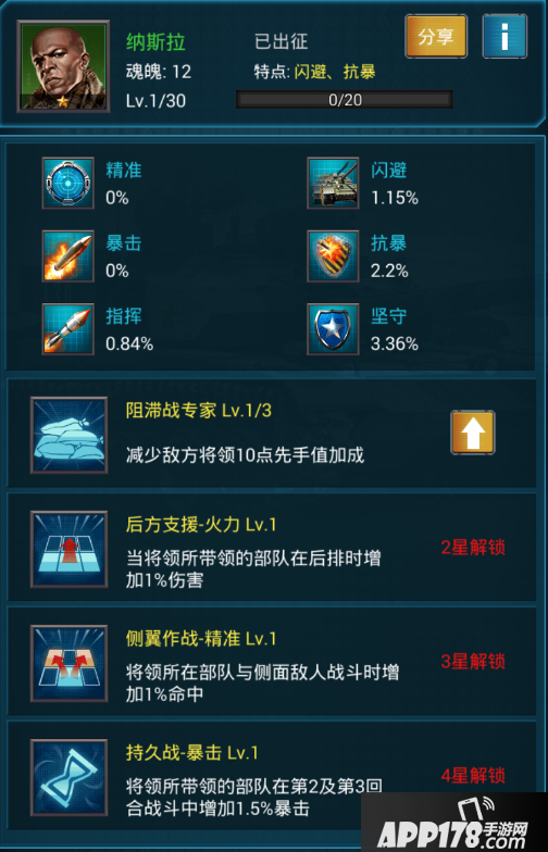 先手值,是《战争时刻》中的一个重要因素。先手值高的,会比对方先出手,先出手的一方能够占有优势。攻打实力远低于已方的,可以把火箭车放先手位,凭借着群攻+高暴击达到秒杀对方而无损的效果。攻打实力差不多的,同样可以把火箭车放先手,提前消耗对方的兵力,当然这种情况也会导致火箭车被反击损耗。也可以把坦克放前排当肉盾,火箭车放后面减少火箭消耗,前提是坦克一定要肉。本期,小编将给各位指挥官介绍几个影响先手值的将领。