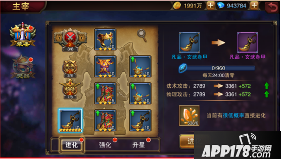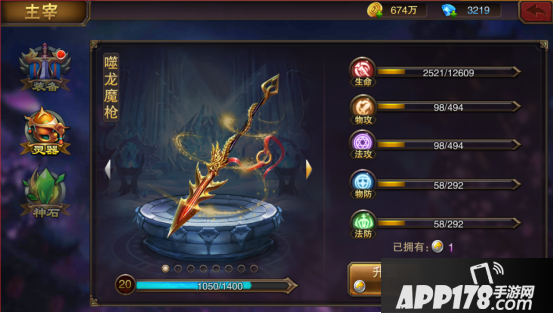 和装备一样,神器也可以通过消耗指定材料来进行升级,将主宰属性逐步提升。