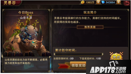 既然不能打败它,就要想办法让自己不被它打败。山岳灵犀的攻击力也相当高,因此建议玩家们安排自己皮厚血高的防御型英雄或者能够提供补给的治疗型职业,坚持的时间越长,获得的奖励也就越多。玩家每天可以挑战两次灵兽谷,可获得大量英雄经验药水和装备强化道具,挨两顿打让英雄实力大幅度提升,这波不亏!