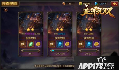 “元素争霸”玩法在每日的8、16、以及24整点刷新,并提供3个相对应的任务;玩家们需要按照任务的规则完成要求后,才能获得对应的奖励,例如钻石、金币等。不过,元素争霸的任务是有区分不同星级的,而不同星级的任务除了影响掉落奖励之外,对任务本身的难度其实没有太大的影响。玩家只需要通过钻石刷新星级,即可获得高额物品的奖励啦!所以,这里最关键之一,就是元素BOSS挑战所需要的元素挑战劵,而这一张元素BOSS挑战的门票,除了在元素任务中可以获得之外,就只能在关卡、挖宝等其他途径中掉落了。