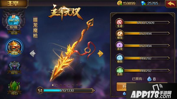主宰系统中包括装备、灵器、神石和称号四部分,其中装备分为8个部位,供战队中所有英雄共享,每个部位的装备都会给英雄提供两种不同的属性,无论是法术攻击还是物理攻击,都能得到有效提升。